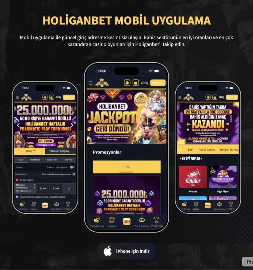 - Holiganbet mobil uygulamasını indirerek adres değişikliklerinden kalıcı olarak bağımsız olun.